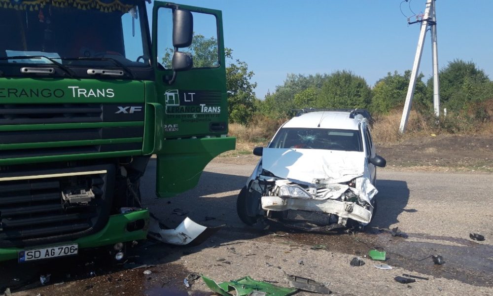 Grav accident în raionul Strășeni. O mașină s-a tamponat cu un camion. Soțul șoferiței de la volanul autoturismului a ajuns la spital. În mașină erau trei...