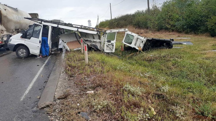 Un șofer a fost la un pas de moarte, după ce microbuzul pe care-l conducea a fost practic rupt în două, în urma unui impact violent...