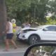 Accident rutier în fața Inspectoratului General al Poliției. Un șofer a tamponat cu mașina sa din spate un alt autoturism.