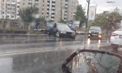 Accident violent pe strada Ismail: O mașină, la un pas cadă în gol de pe pod, după ce șoferul ar fi pierdut controlul volanului.