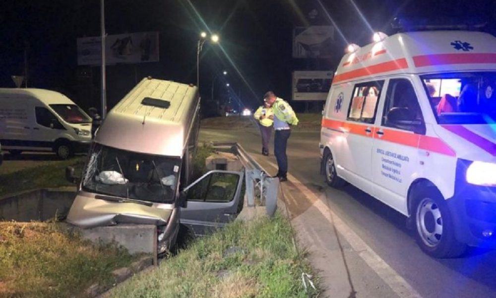 Un microbuz înmatriculat în Republica Moldova a părăsit şoseaua şi s-a oprit violent într-un cap de pod.