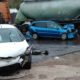 Două mașini și un autocamion de mare tonaj s-au tamponat, pe o stradă din Chișinău.