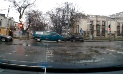 Momentul în care un șofer neatent provoacă un accident la o intersecție din Chișinău a fost surprins cu o cameră de bord.
