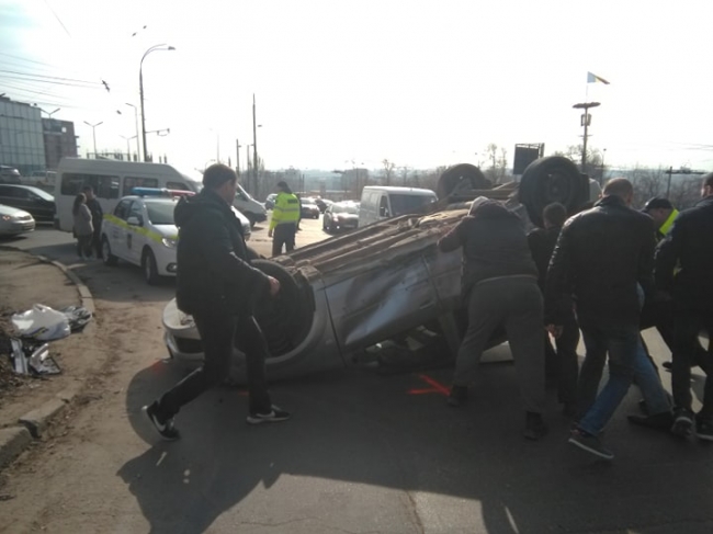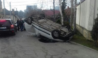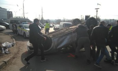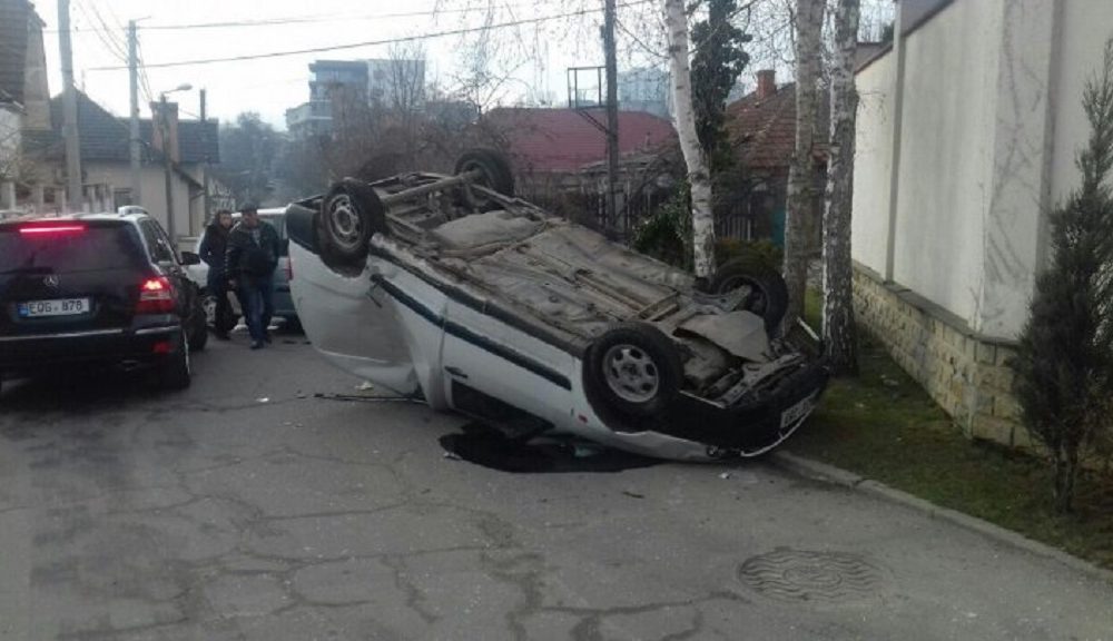 Grav accident pe strada Florilor din sectorul Râșcani. Un taxi a ajuns cu roțile în sus după ce s-a tamponat cu un alt automobil.