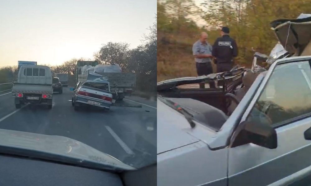 Accident de groază pe traseul Chișinău - Hâncești. O mașină s-a tamponat cu o camionetă și s-a transformat într-un morman de fiare. Acoperișul s-a desprins de...