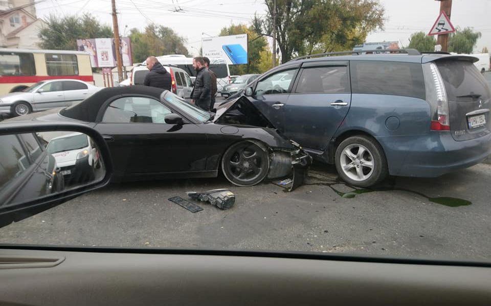 Carambol în centrul Chișinăului. Trei mașini au fost făcute țăndări în urma unui accident de circulație. Totul a avut astăzi, pe strada Ismail.