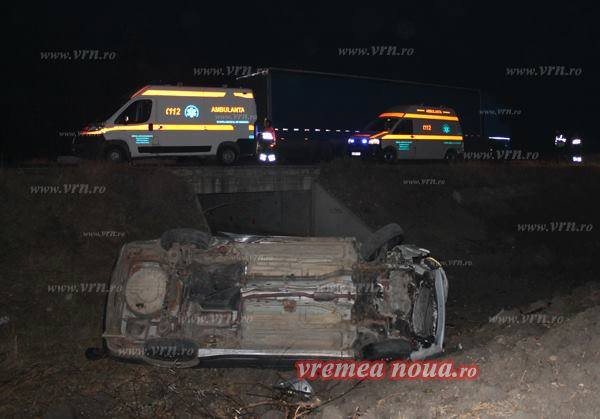 Trei persoane au ajuns la spital cu diferite răni după ce autoturismul în care se aflau a ajuns într-un șanț de pe marginea drumului.