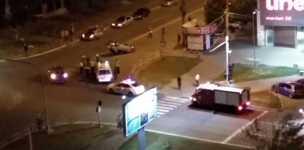 Minute de groază pentru un șofer din capitală. Mașina pe care o conducea s-a răsturnat după ce s-a tamponat cu un alt automobil.