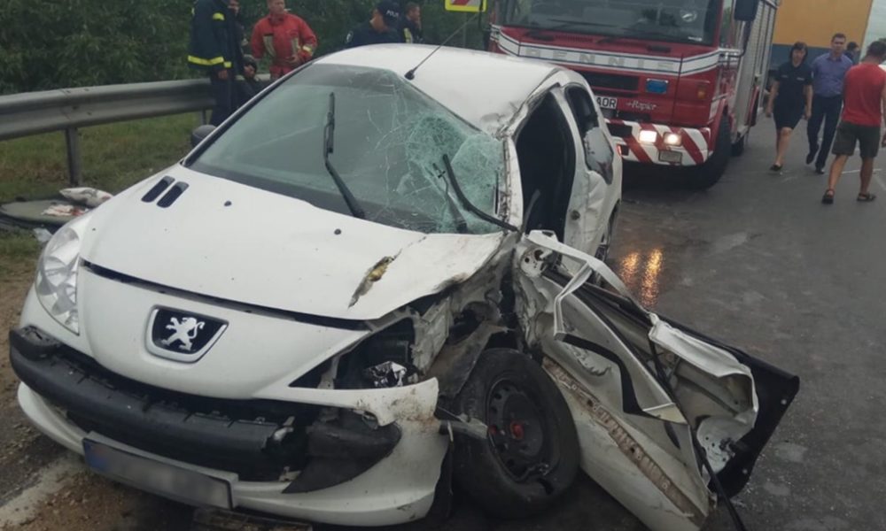 În urma impactului, femeia care era la volanul mașinii, a rămas prinsă între fiare.