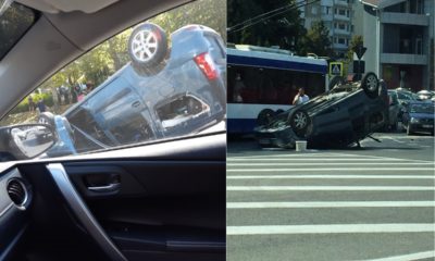 Sfârșit de săptămână cu năbădăi pentru un șofer din capitală. Acesta s-a inversat cu automobilul în urma unei ciocniri cu o altă mașină.