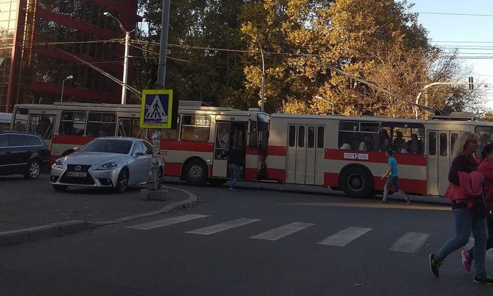 Accident într-o intersecție din sectorul Râșcani al capitalei. Două troleibuze s-au tamponat violent.