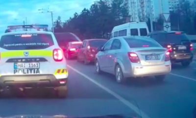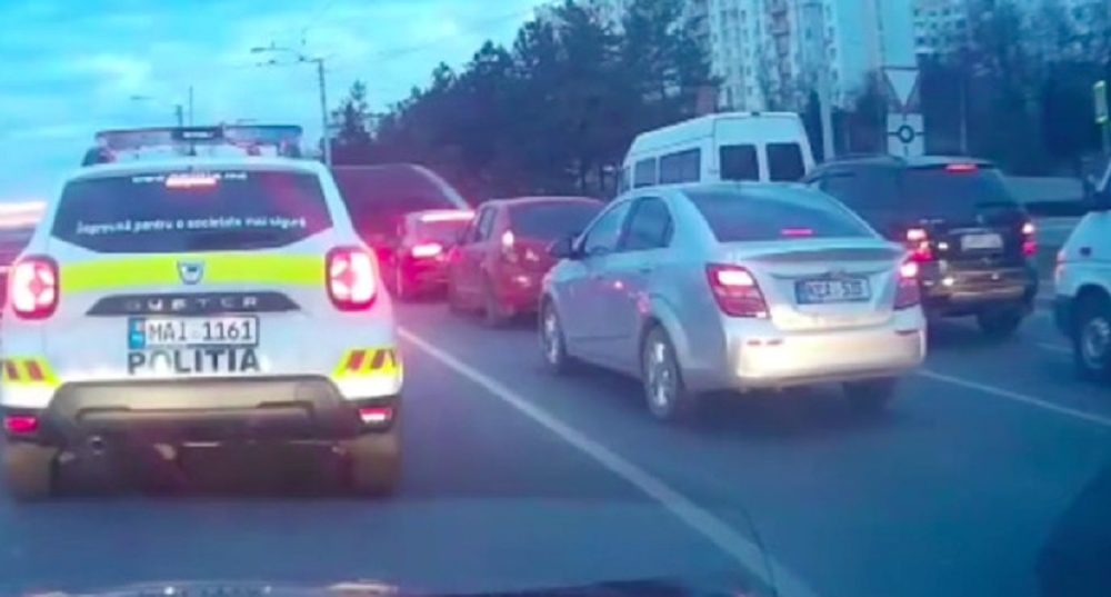 Șoferul unui automobil de model Mercedes a fost surprins cum încalcă regulile de circulație chiar sub ochii polițiștilor.