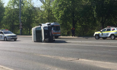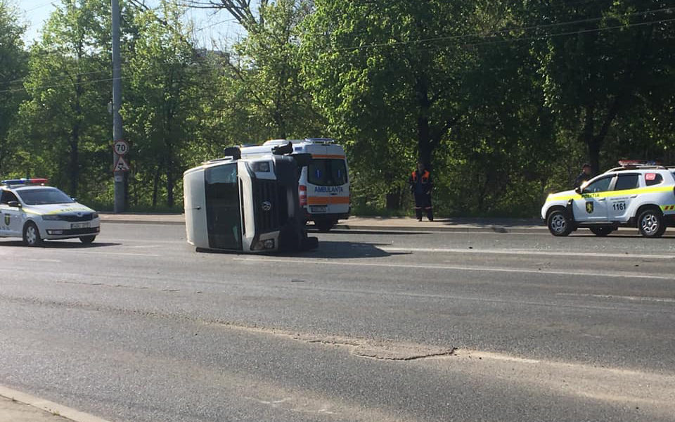 Grav accident de circulație în sectorul Râșcani al capitalei. Un microbuz s-a răsturnat în mijlocului șoselei după ce s-a tamponat cu un automobil.