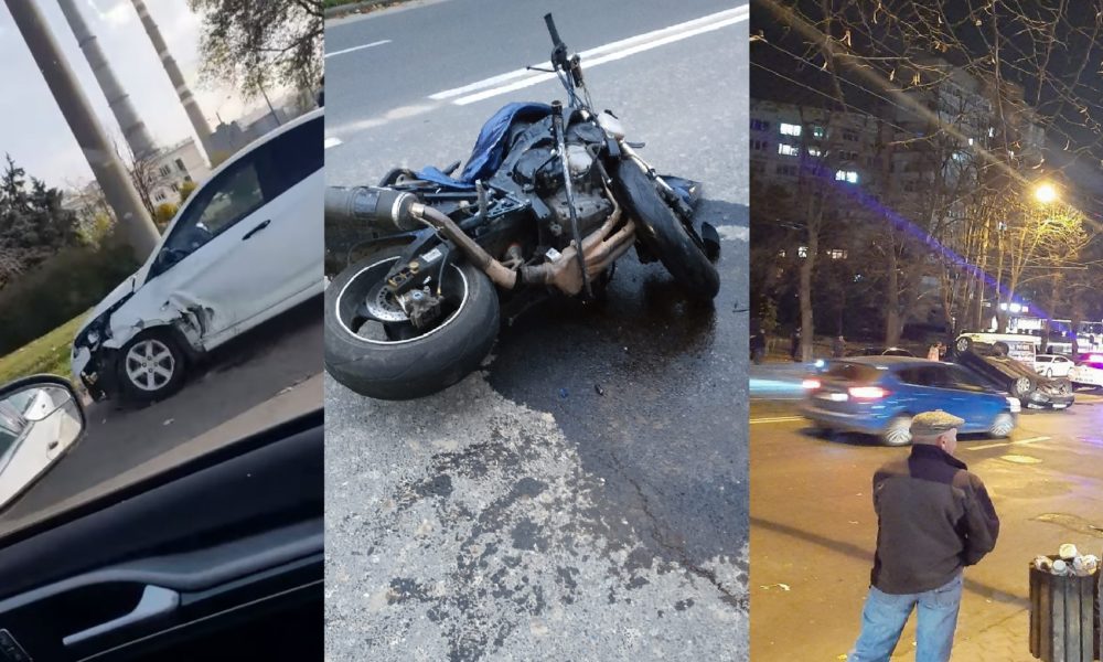 Ziua accidentelor violente în capitală. Mai multe mașini au fost avariate, una s-a inversat în mijlocul intersecției, iar un motociclist a ajuns la spital.