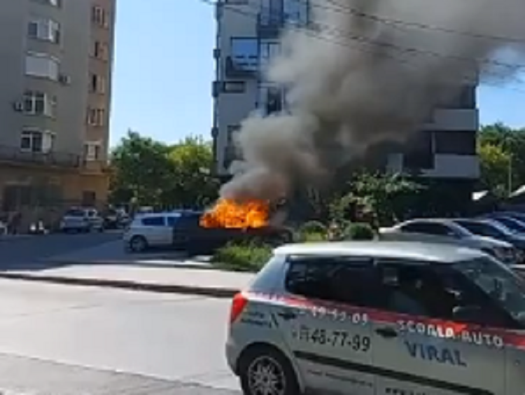 Incendiu de groază, în capitală. O mașină a luat foc, iar flăcările riscau să se răspândească și asupra autoturismelor din preajmă.