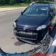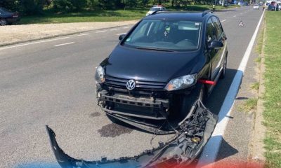 Coliziune violentă la ieșirea din capitală. Un șofer a ajuns cu mașina într-un stâlp în urma impactului cu un alt vehicul.