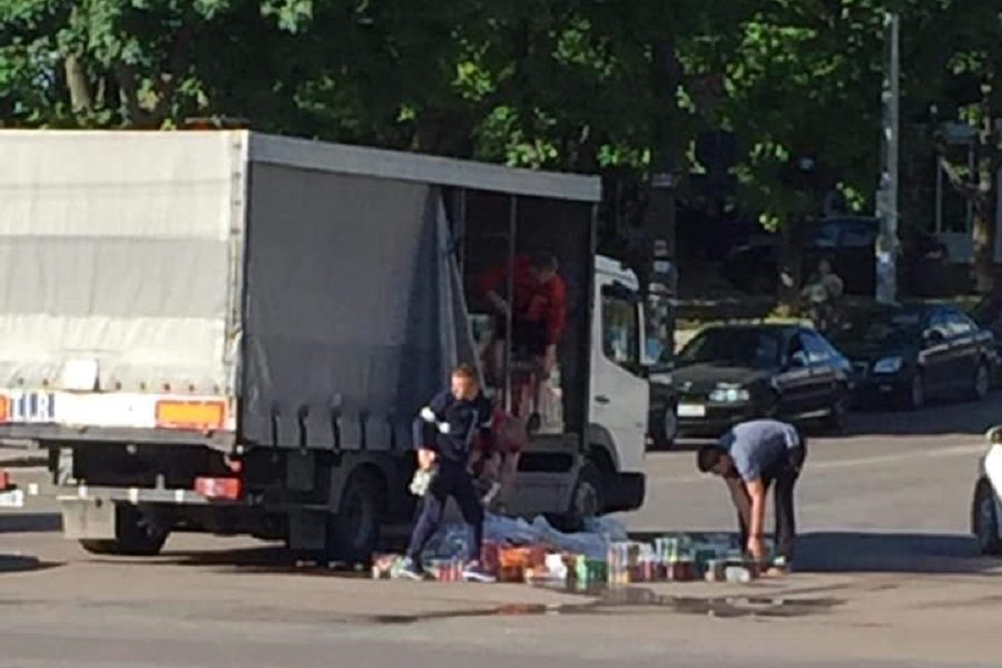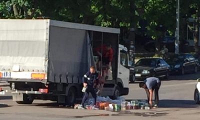 Dimineața cu ghinion pentru un șofer de camion din capitală. Acesta s-a pomenit cu marfa împrăștiată pe carosabil în urma unui incident.