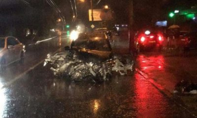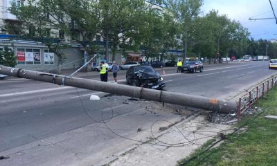 Noapte de groază pentru un șofer din capitală. Acesta a scăpat ca prin urechea acului după ce a doborât cu mașina sa un stâlp.
