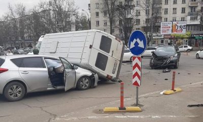 Carambol pe o stradă din capitală. Trei autoturisme, dar și un microbuz s-au tamponat violent într-o intersecție.