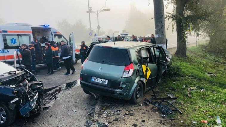 Coliziunile s-au ținut scai și de municipiul Chișinău. Un accident cumplit s-a produs în sectorul Botanica. Un taxi a ajuns în stâlp, după ce s-a tamponat...