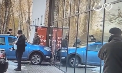 O șoferiță a ajuns cu mașina direct în peretele de sticlă a unui supermarket din Chișinău.