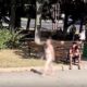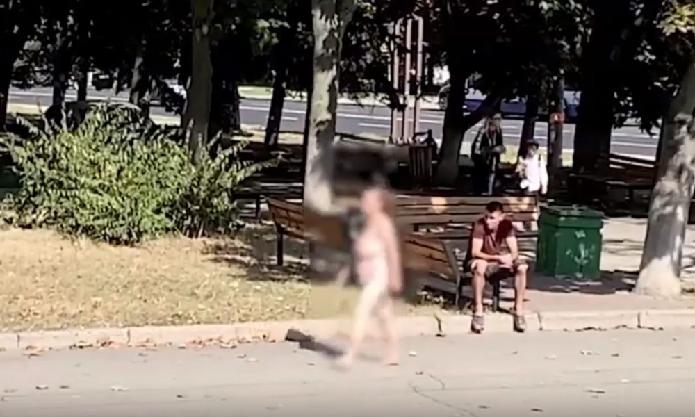 O femeie a fost filmată cum se plimbă în pielea goală pe o stradă din Chișinău.