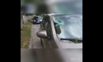 Un șofer a ajuns cu parbrizul distrus, după ce o creangă a căzut peste mașina sa pe o stradă din capitală. Momentul impactului a fost surprins...