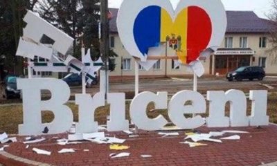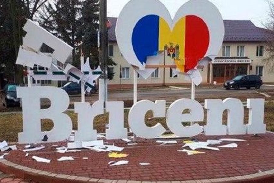 Act de vandalism chiar în centrul orașului Briceni. Momentul în care un tânăr distruge panoul cu sloganul "Eu Iubesc Briceni" a fost filmat de un amic...