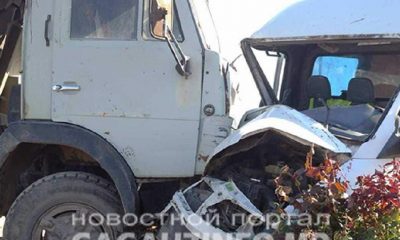 La un pas de tragedie. Un autocamion și un microbuz marfar s-au tamponat violent, iar șoferul microbuzului ar fi zburat prin geamul vehiculului.