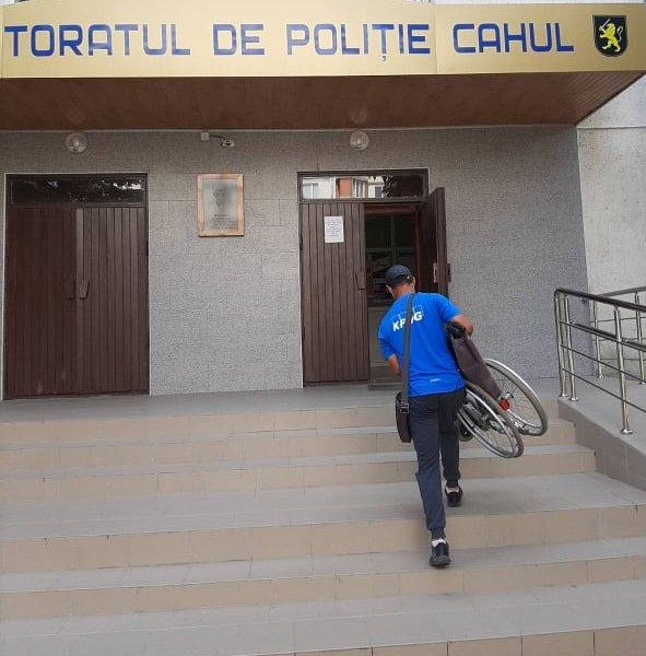Minune, în fața inspectoratului de poliție Cahul. Un tânăr de 18 ani s-a ridicat singur din scaunul cu rotile ca să intre în instituție.