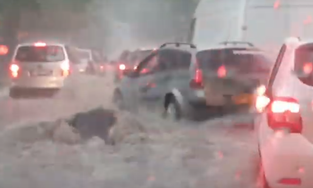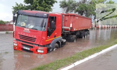 Ploaia care a durat circa o oră a blocat practic traficul pe drumul național R34 pe segmentul Slobozia Mare.