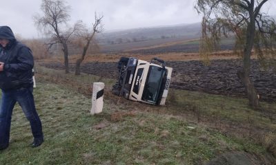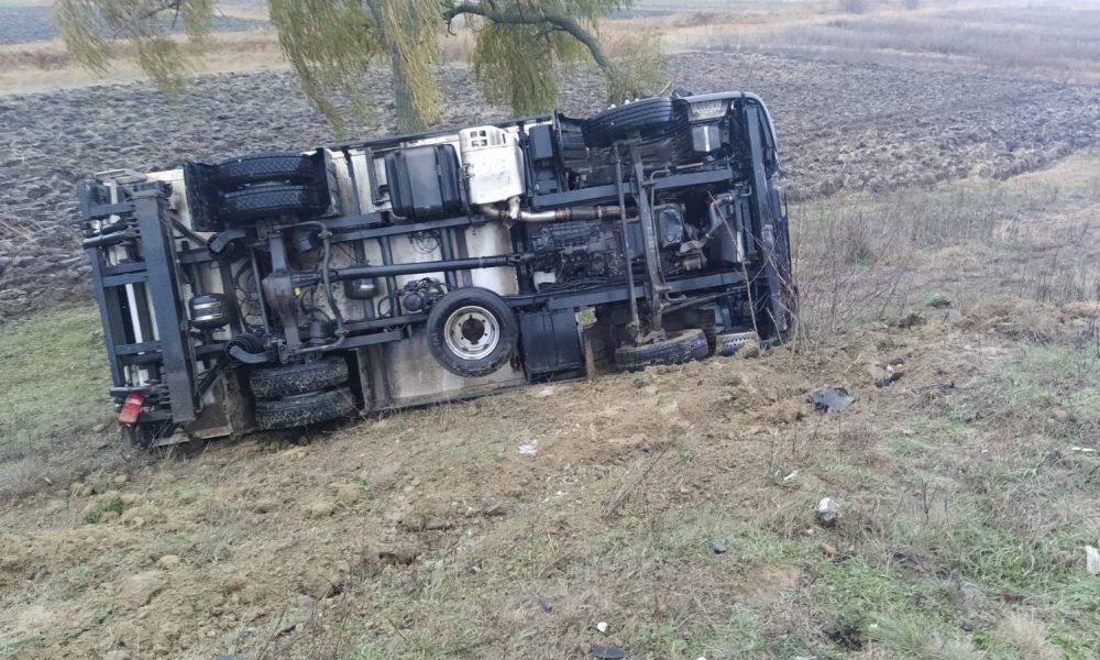 Un camion a derapat de pe traseu și a ajuns în șanț, la Călărași.