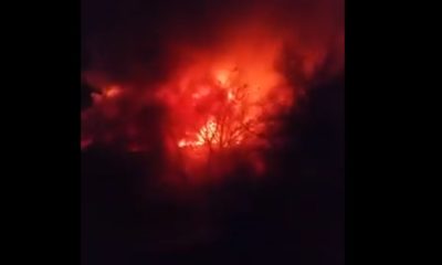 Momentul în care un garaj este sfâșiat de flăcări, la Călărași. Focul a cuprins totul în jur.