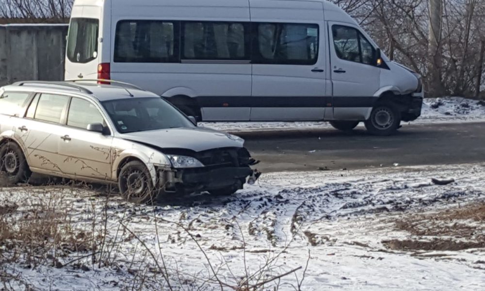 Minute de panică pentru pasagerii unui microbuz de pe ruta Călărași-Chișinău. Vehiculul în care se aflau s-a ciocnit violent cu un automobil.