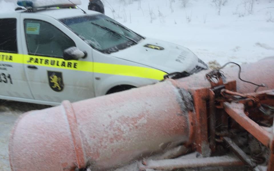 O mașină a INP a fost grav avariată după ce s-a tamponat cu o autospecială de deszăpezire pe traseul Bălți - Chișinău.