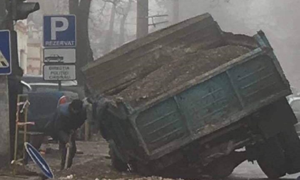 Ghinion pentru șoferul unui camion de mare tonaj. Camionul pe care-l conducea a rămas blocat astăzi pe o stradă din Capitală după ce una din roti...