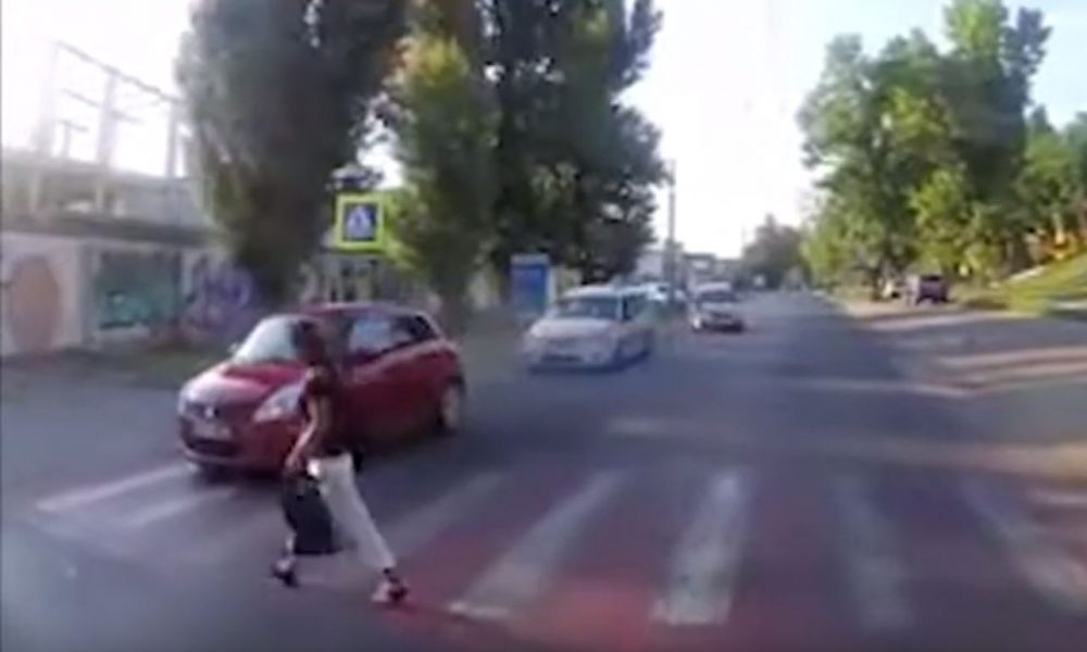 O femeie a fost la un pas de a fi lovită de o maşină pe o trecere de pietoni de pe strada Munceşti din Capitală.