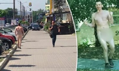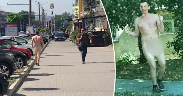 În pielea goală pe stradă. Aşa a fost surprins un bărbat pe bulevardul Moscovei din Capitală.