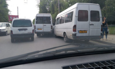 Accident în capitală. Două microbuze de rută, pline cu pasageri nu au putut împărți aceeași stradă și s-au tamponat violent.