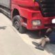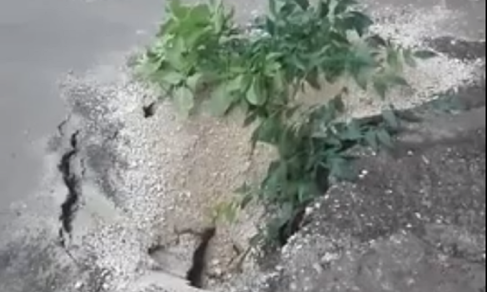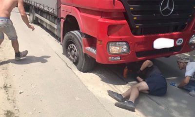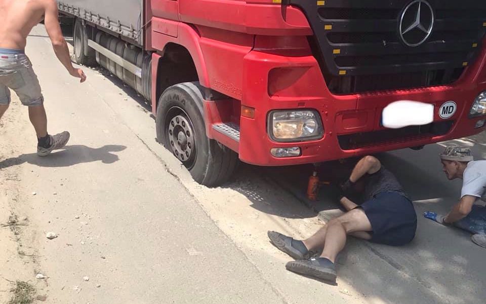 Minute de panică pentru un șofer de TIR. Asfaltul s-a surpat chiar în timp ce acesta se deplasa pe șosea.