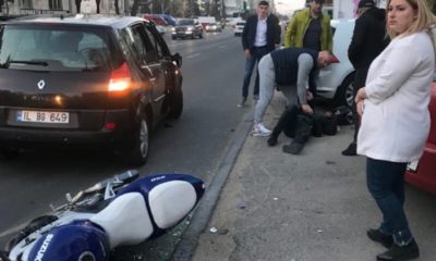 Un motociclist a fost transportat la spital după ce a intrat violent într-o mașină. Totul s-a întâmplat astăzi pe strada Kiev din Capitală.