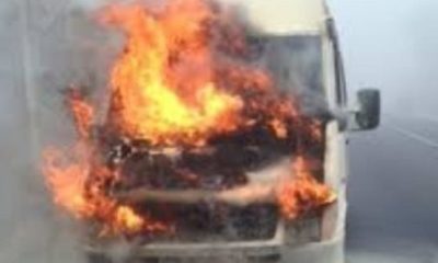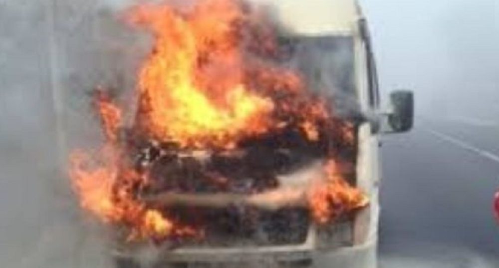 Un microbuz de linie a fost cuprins de flăcări în această după-amiază.