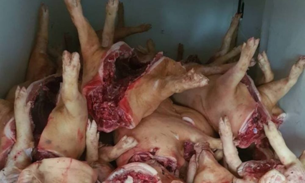 Șoferi documentați de inspectorii de patrulare în timp ce transportau ilegal circa 2 000 kg de carne de porc.