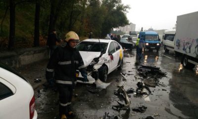 Accident cumplit în Chișinău. Un șofer a rămas blocat între fiarele automobilului după ce mașina pe care o conducea s-a tamponat cu alte două autoturisme.