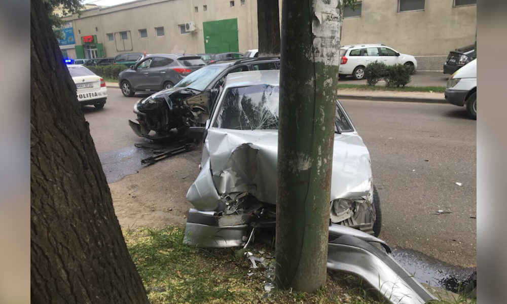 O MAȘINĂ A FOST FĂCUTĂ ZOB, ÎN URMA UNUI ACCIDENT DIN CENTRUL CAPITALEI