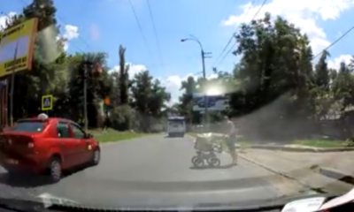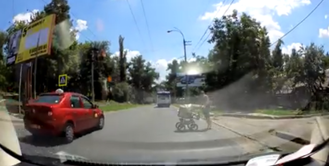 Un șofer i-a permis unui bărbat cu cărucior să traverseze strada pe zebră, ca la câteva secunde - un alt conducător auto să treacă cu viteză....