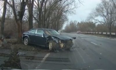 Imagini înspăimântătoare, surprinse de o camera de bord, pe o stradă Din Chișinău. O mașină a derapat, în viteză de pe traseu și s-a izbit violent...