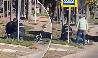 Un bărbat a fost pus la pământ și încătușat pe o trecere de pietoni de către oamenii legii.