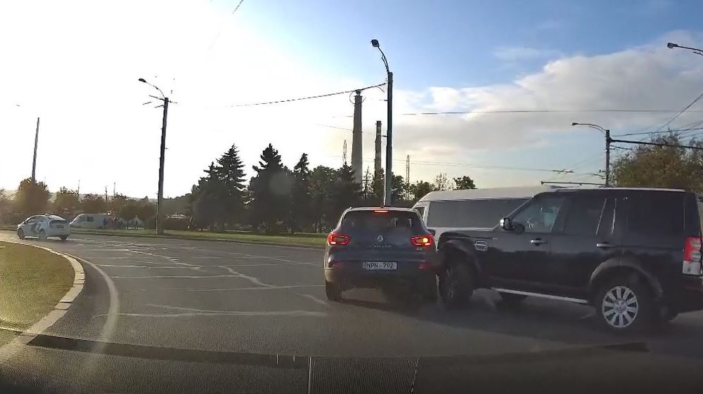 Dimineața cu ghinion pentru doi șoferi din capitală. Aceștia s-au tamponat pe loc drept chiar pe un sens giratoriu.