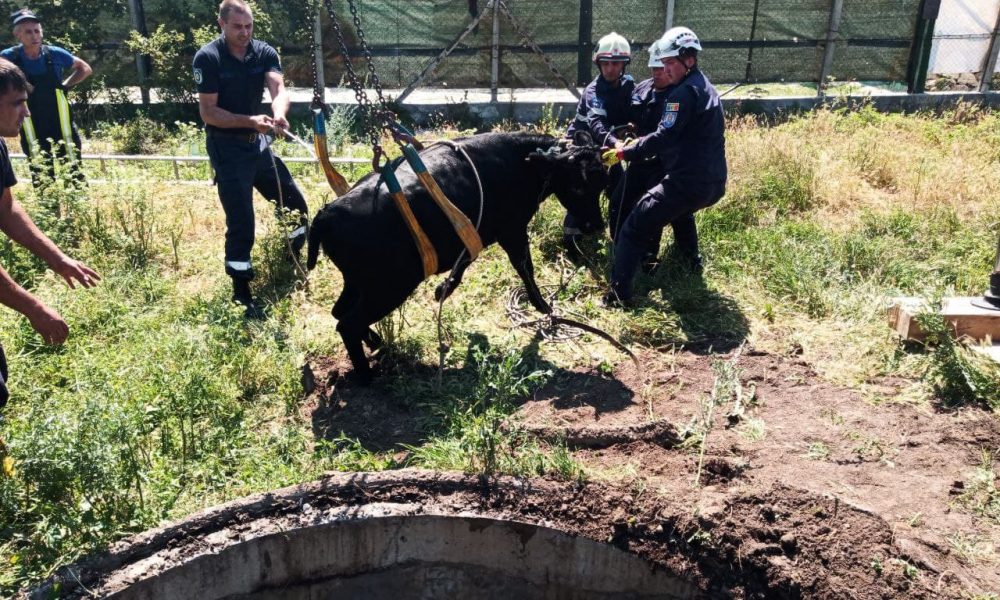 Pe 11 iulie angajații IGSU au fost alertați pentru a interveni pe strada Maria Drăgan din localitatea Colonița a municipiului Chișinău pentru a scoate o vită...